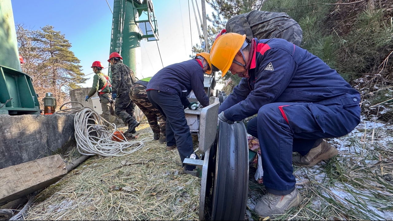12月16日凌晨6时,晨曦微露。记者在武当山金顶景区看到,索道检修人员高红雨与队友们已穿戴好安全帽、工作服,系紧防滑鞋,携带工具箱,开启索道检修工作。